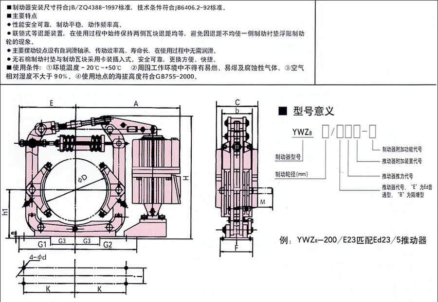 優(yōu)質(zhì)YWZ8-200/23液壓制動(dòng)器YWZ8-300/E50制動(dòng)器YWZ8-300/E80制動(dòng)器YWZ8-400/E80制動(dòng)器YWZ8-400/E121制動(dòng)器YWZ8-500/121制動(dòng)器,我公司工業(yè)制動(dòng)器產(chǎn)品性能安全可靠,制動(dòng)平穩(wěn),動(dòng)作平率高,使用壽命長。